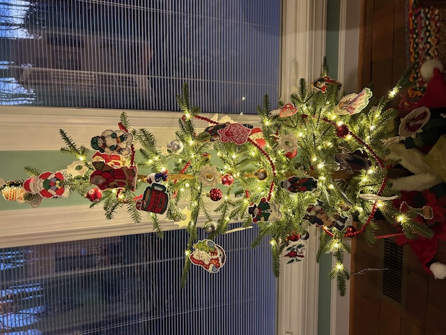 This year’s counted cross stitch ornaments are here – didn’t do as much this year due to some physical problems with my hands and several other health scares for me and mine, but I did keep typing. One of the roommates created a whole tree just for my ornaments! If you’d like to see past ornaments, head over to my pinterest page – here